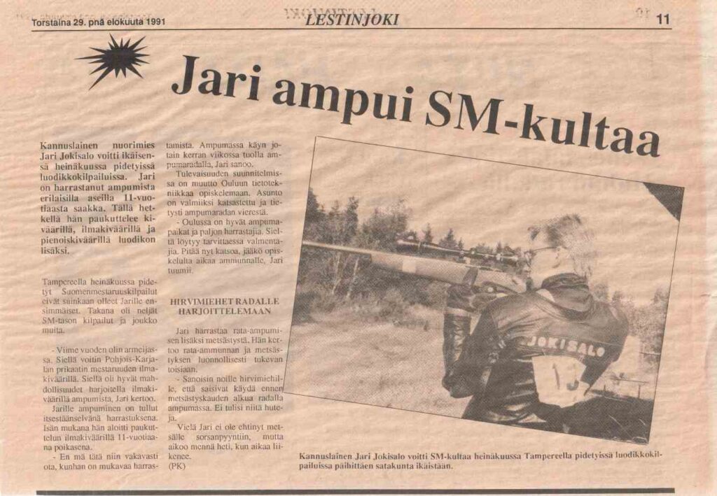 Torstaina 29.8.1991 julkaistussa Lestinjoki lehdessä oli juttua Jari Jokisalon SM -kullasta.